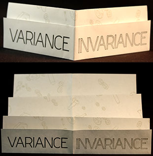 Artist Judy Rushin partnered with the Facility for Arts Research at Florida State University for her project Variance / Invariance. Rushing created a system in which artworks are assembled, dismantled, and shipped in small boxes. This present work, also called Variance / Invariance is the instruction sheet that accompanied her art.