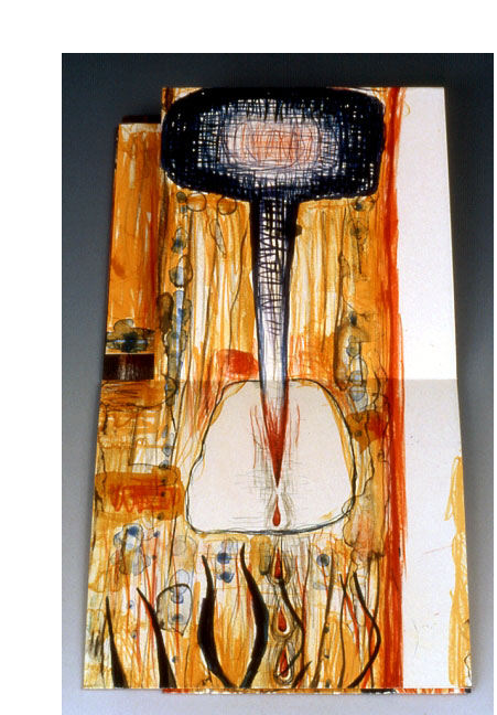 Karen Kunc: “A visually and structurally, playful work of folded and shaped pages, that allow for multiple juxtapositions of images, color, line, open space and shifting screens. Symbolic suggestions of wind swept spaces, fence structures and natural forces as part of the artist's vocabulary are tactile elements for a powerful graphic statement. “