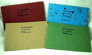 9.5 x 6.5"; 16 pages, with one fold-out. Printed on Okawara and Lokota Cornflower papers. Type set in Janson Text using polymer plates. Bound in paper covers (paper by St. Armand). Each book has a slightly different cover.