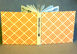 5.5 x 5.5"; 108 pages. Endpapers from Paul Bercy, Simples Notions de Francais, New York, 1894. Printed onto Mohawk Superfine with an Indigo printer. Bound in a three-part binding with stamped linen spine and gingham fabric over boards.