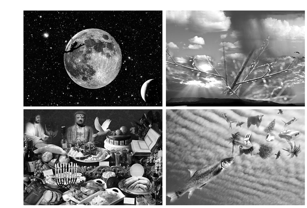 14.4 x 9"; 32 pages. Composite images created from original and found photographs. Archival inkjet printing on Rives BFK. Post bound in paper covered boards. Illustrated paper title tipped on front board.
