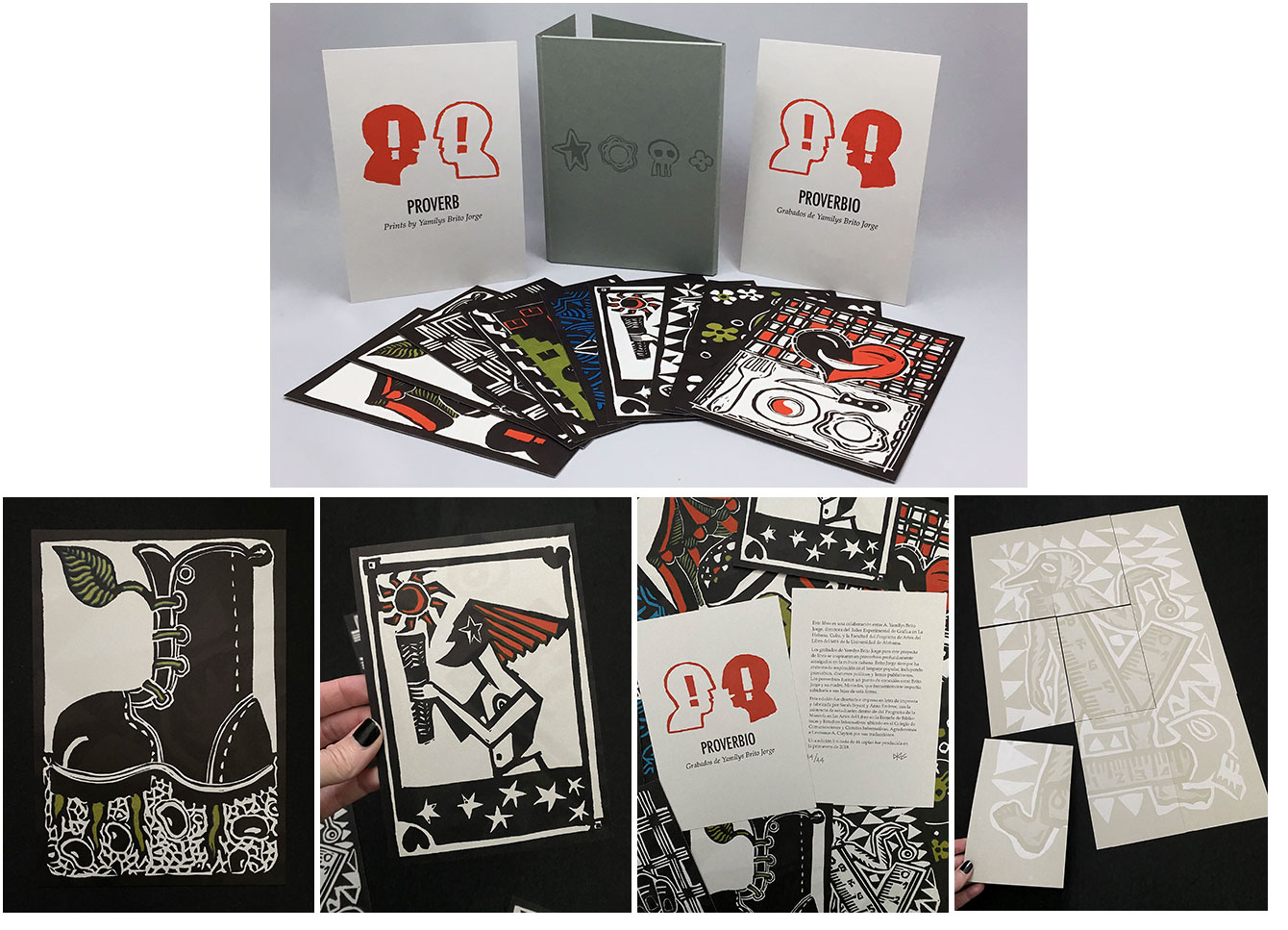 Parallel Editions: "’Proverb/Proverbio’ is a collaboration between Yamily Brito Jorge, director of the Taller Experimental de Grafica in Havana, Cuba, and faculty from the University of Alabama MFA Book Arts Program. Yamily Brito Jorge's prints for this book project were inspired by proverbs deeply rooted in Cuban culture.