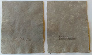"This piece consists of an original concrete poem in the shape of a handbag printed on paper handmade by the artist."