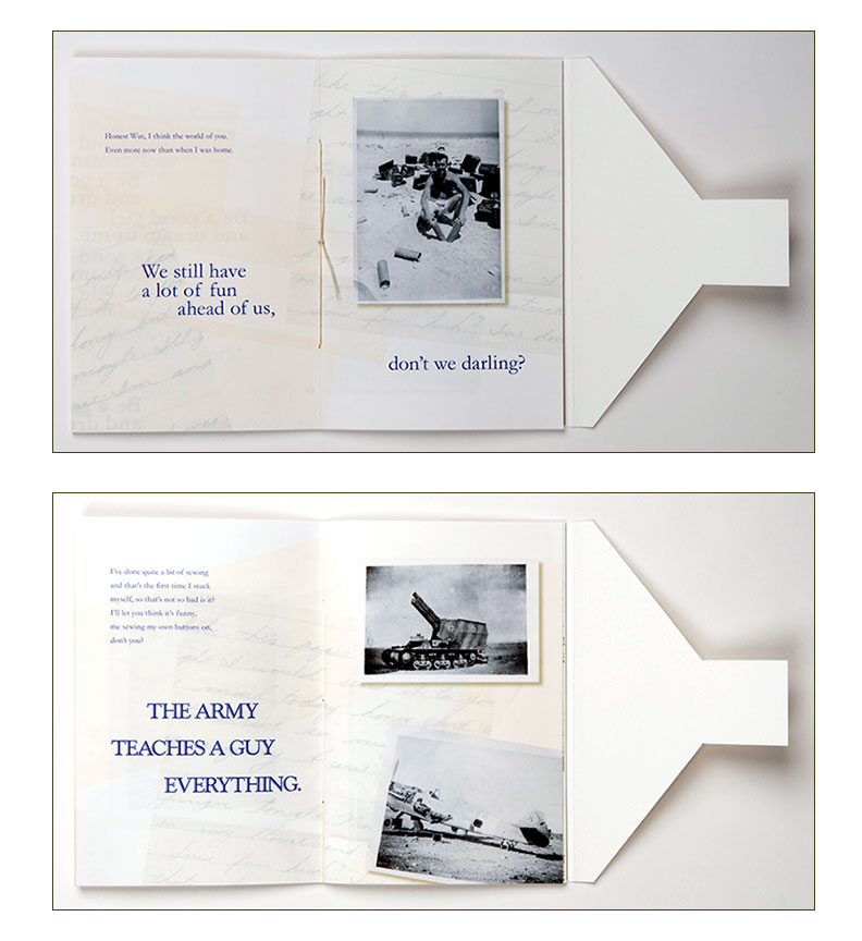 6" x 9" x .5"; 6 leaves (18 flags). Letterpress printed from metal type and polymer plate on Stonehenge paper in Baskerville and Univers. Inkjet printed on Hahnemühle Duo and Epson Ultra Smooth. Altered and found photographs (used with permission). Flag book structure. Bound in paper over boards. In cloth covered slipcase. Signed and numbered by the artist.
