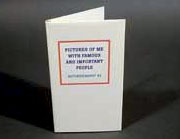 "PICTURES OF ME WITH FAMOUS AND IMPORTANT PEOPLE (Autobiography #3) consists of pictures gleaned from over 100 photographs that were taken of me by other people, from baby pics to digital snaps. At first I was going to publish all of them in chronological order which would have been conceptually elegant but ultimately boring (and, to me, kind of creepy). The more I looked at this collection, I began to think about the generic relationship of photographs to memory and collecting. I tried to distance myself and see them as raw information, like entries in a dictionary or articles in an encyclopedia. ... It utilize[d] a 16-page single sheet format I've taught to students but never used in my own work. It was printed on one side of Mohawk Letterpress paper using an Epson Photo-Ex ink Jet printer.
